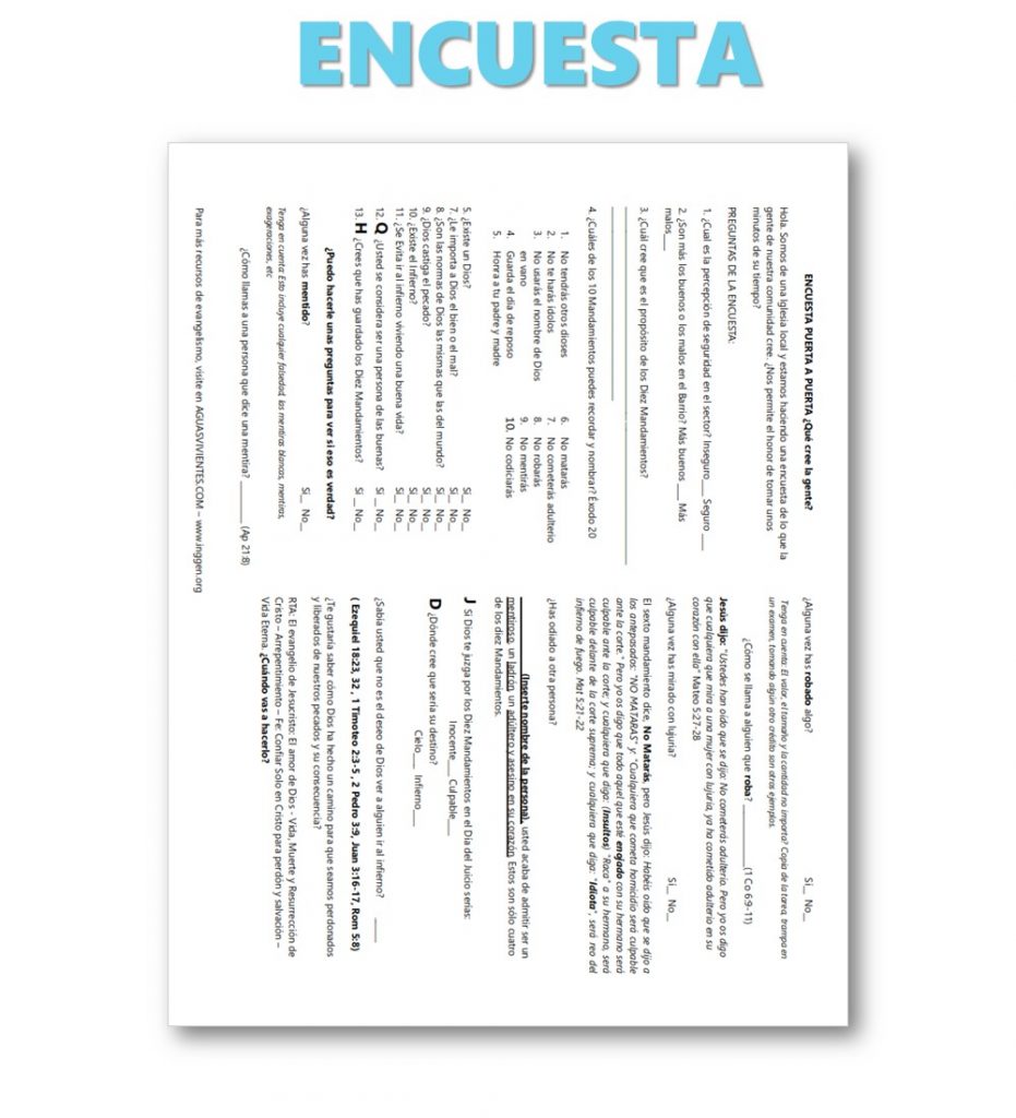 ☑ Segundo, tenemos una encuesta puerta a puerta, que te ayuda a iniciar conversaciones y llevarlas al evangelio